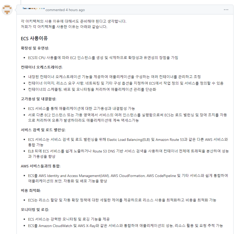 어제 아키텍처를 설계 한 뒤 팀원이 살펴보고 의견을 남겨줬다.