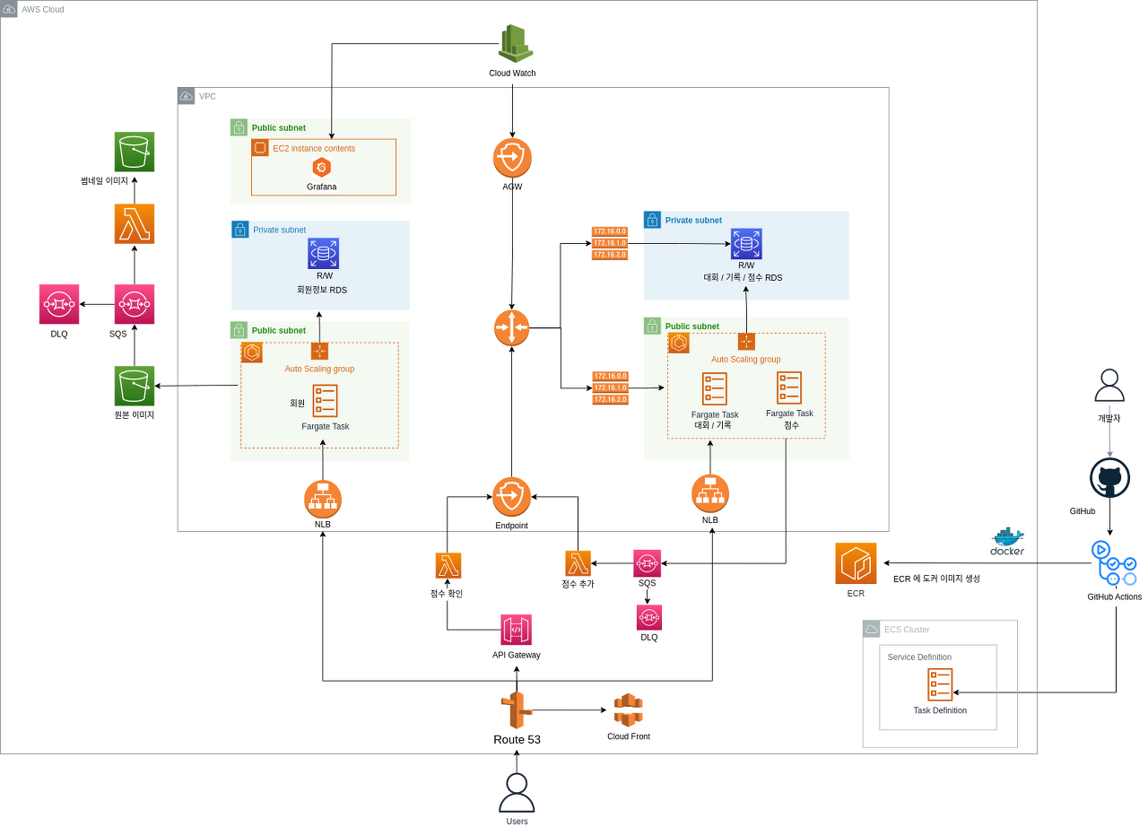 또한 EC2가 아닌 ECS를 쓸 것이기 때문에 잘못 넣어둔 아이콘을 수정했고, 테라폼은 추후 인프라 구현이 된 후에 진행을 해도 될 것이라 판단해 제외하였다.