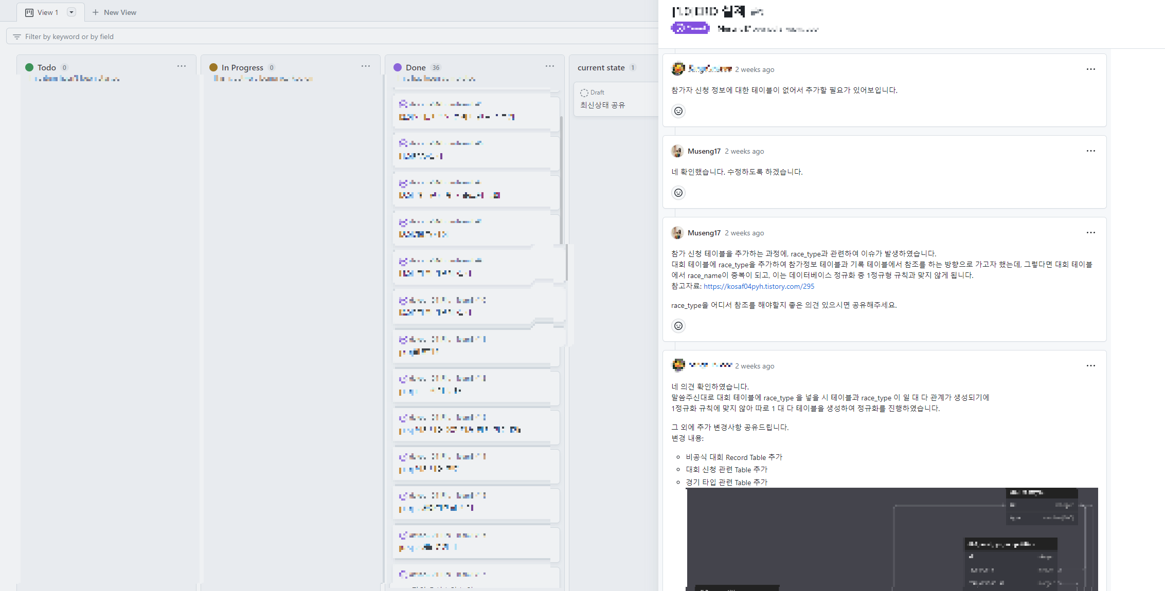 무언가를 결정하거나 의논할 땐 늘 이슈에 잘 적어두어 이후에 착오나 의견충돌을 줄이고 원활한 진행을 할 수 있도록 노력했다.
